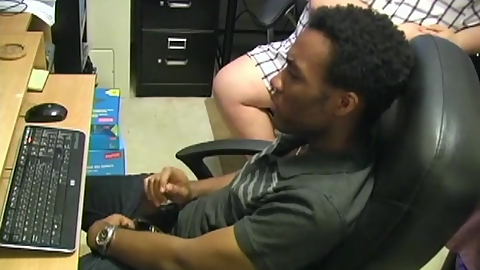 Office employee's tight pink asshole pounded by two big black dicks