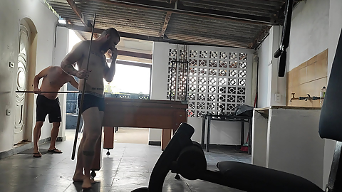 Camera Films Straight Players Playing Pool and Naked