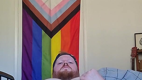 Stepdaddy Bear Jerking off Big Fat Cock Cumshot and Ball Bouncing