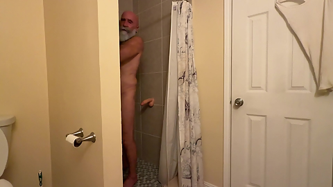 Stepdaddy Bear Jerking off Big Fat Cock Cumshot and Ball Bouncing