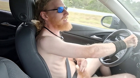 Random guy caught in a taxi, enjoying a solo session on the highway