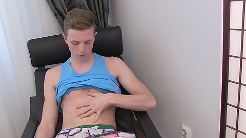 Gorgeous young twink Rustie Port gets hot and heavy with solo play on the living room floor