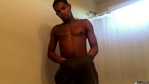 Solo ebony hunk stroking his big black cock
