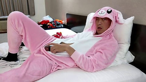 Hot Asian guy getting off in sexy panties